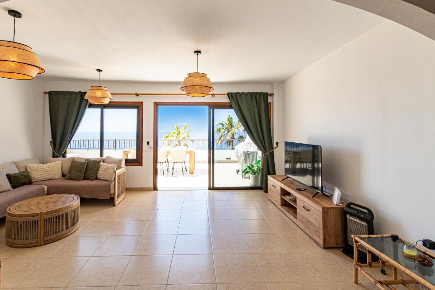 El apartamento cuenta con 3 dormitorios, 2 baños, ropa de cama, toallas, TV de pantalla plana, zona de comedor, cocina totalmente equipada y balcón con vistas al mar.