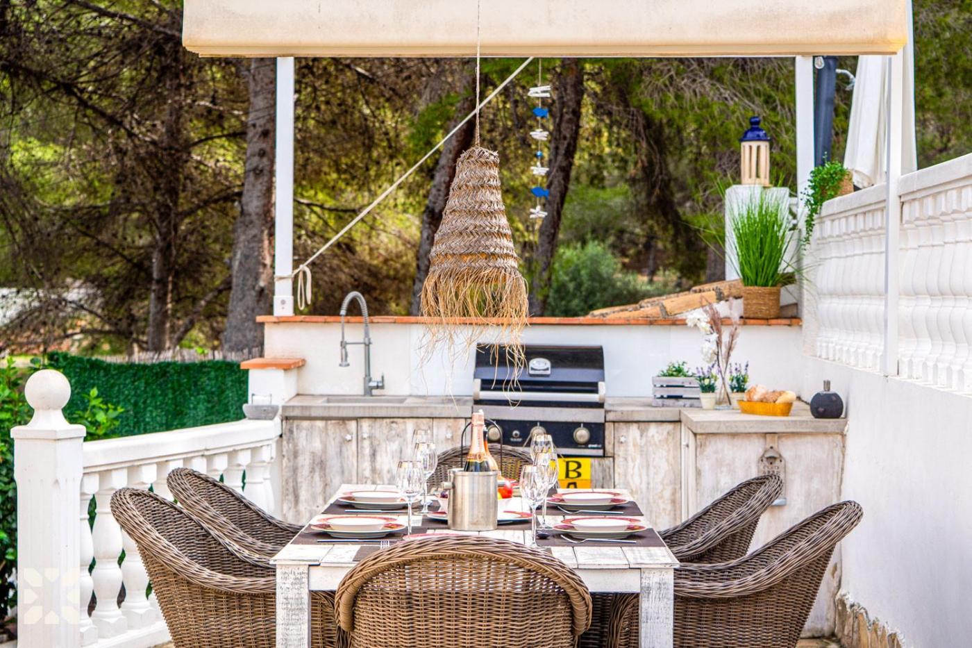 Villa. This villas standout feature is the private pool. Boasting 4 bedrooms and 3 bathrooms with a bath, this spacious villa has a well-fitted kitchen and a terrace. The fully equipped kitchen has a stovetop, a refrigerator, a dishwasher and kitchenware. The air-conditioned villa offers a TV with satellite channels, a washing machine, a tea and coffee maker, a barbecue as well as garden views. The unit offers 5 beds.